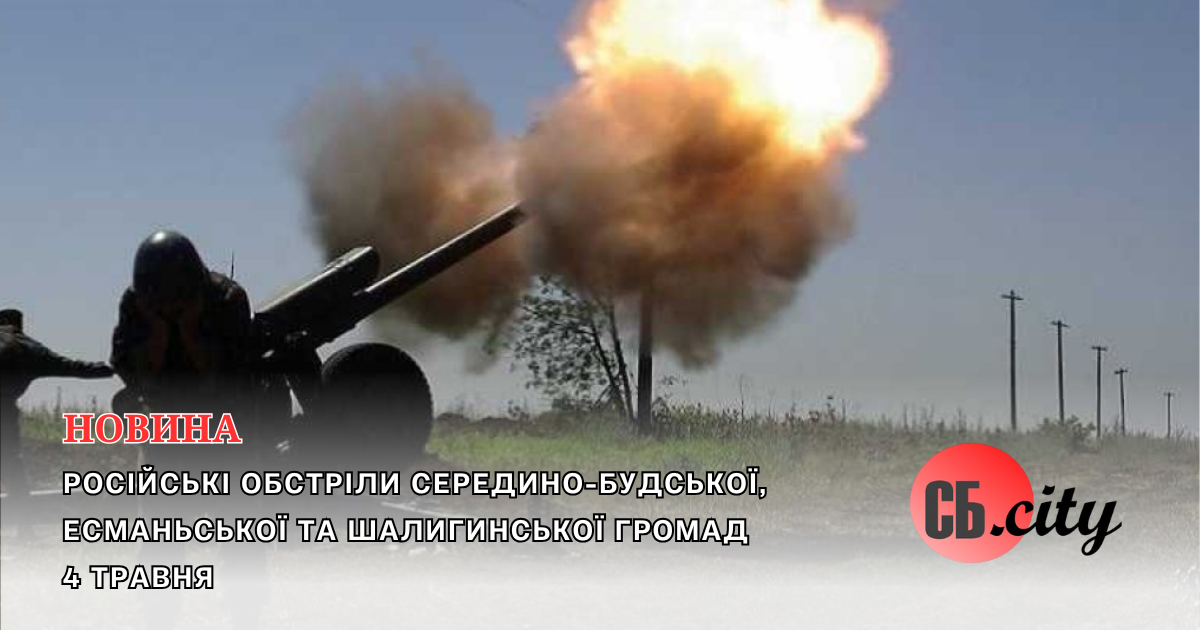Відповідно до ранкового звіту Оперативного командування “Північ”, протягом 4 травня російські війська здійснили 59 обстрілів 13 населених пунктів Шосткинського району, використовуючи різноманітне озброєння. Під ударами опинилися Середино-Будська, Есманьська та Шалигинська громади, які зазнали атак з використанням FPV-дронів, артилерії, безпілотників та мінометів.