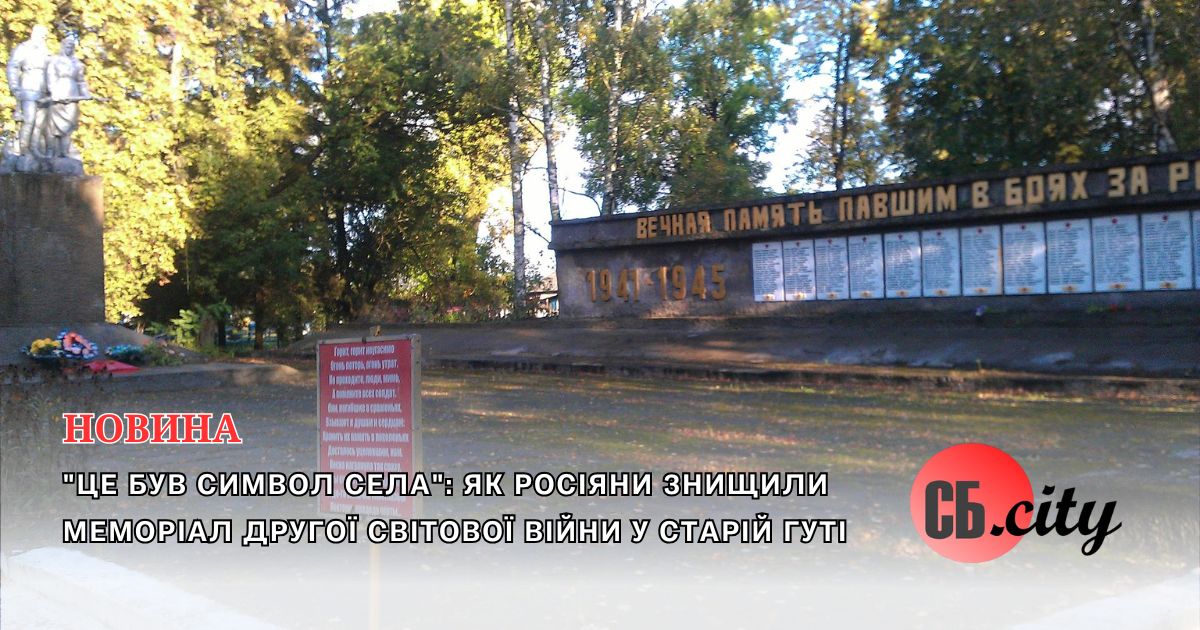До повномасштабного вторгнення росії Стара Гута, невелике село на Серединобудщині, мало власний символ історичної пам’яті — меморіальний комплекс, присвячений воїнам, які загинули під час Другої світової війни. Його зруйнували російські війська в день, коли весь світ вшановує пам’ять полеглих у боротьбі з нацизмом — 8 травня 2023 року. Журналісти “Середина-Буда.City” зібрали матеріал про історію цього меморіалу, його значення для громади та долю комплексу від початку повномасштабної війни.