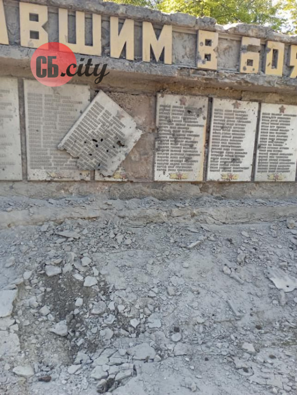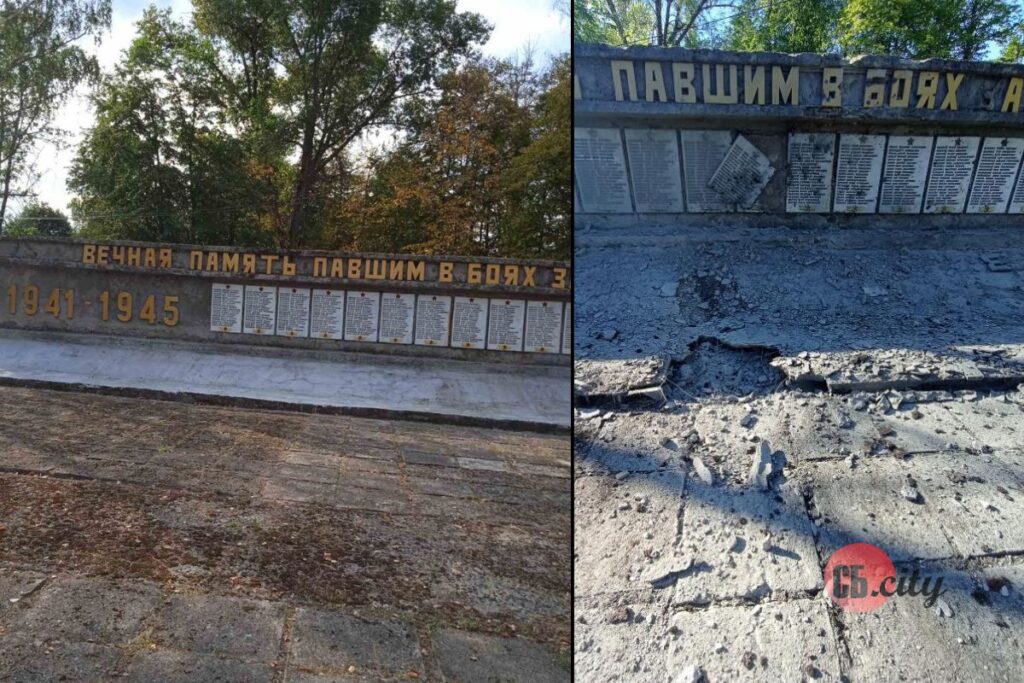 Фото меморіалу в Старій Гуті до повномасштабного вторгнення та після удару 8 травня 2023 року