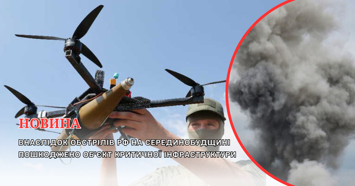 У Середині-Буді зафіксовано 1 вибух, ймовірно, від FPV-дрону. Внаслідок цього обстрілу було пошкоджено об’єкт критичної інфраструктури.