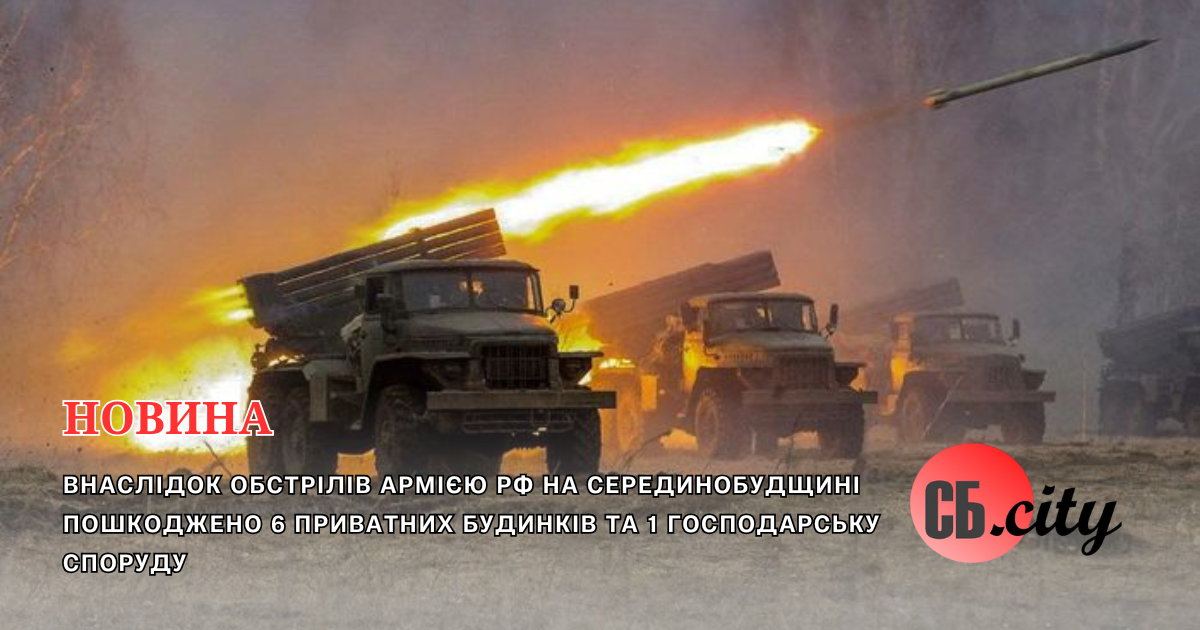 Місто Середина-Буда зазнало 8 вибухів, ймовірно, від РСЗВ. Внаслідок цих обстрілів було пошкоджено шість приватних будинків та одну господарську споруду.